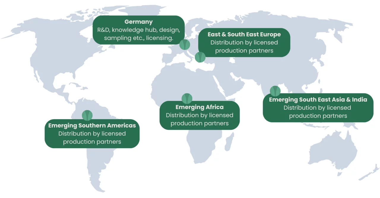 Slim business model: locally producing with licenced emerging market partners profiting from knowledge transfer and R&D from Germany